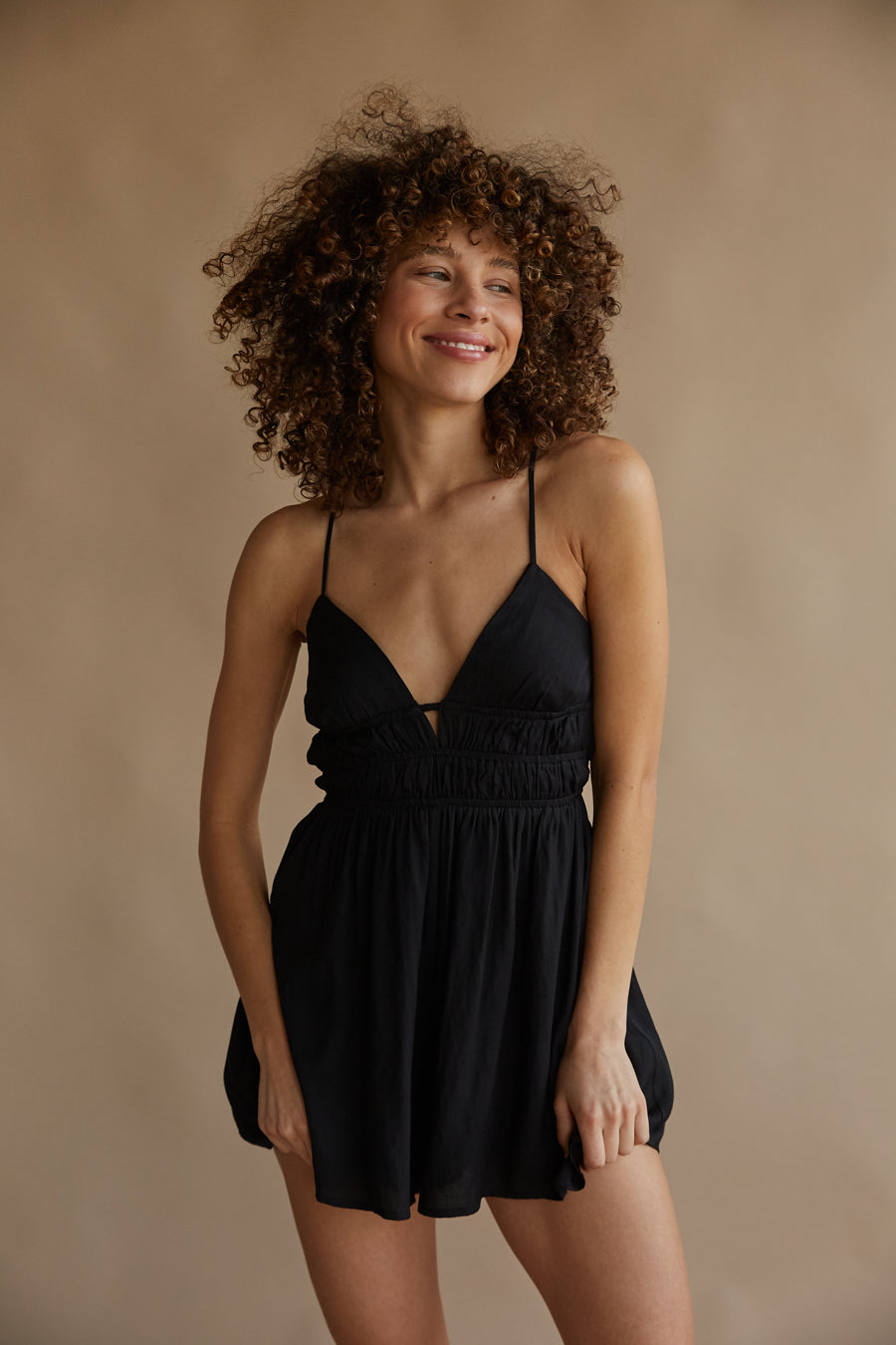 Feeling fresh in the flirty and feminine Joy Smocked Babydoll Romper! Featuring a flattering smocked waist, open back, and flowy babydoll silhouette, this romper is the perfect outfit for a springtime vacay. Available in baby blue and black, pair with some darling to complete the outfit!