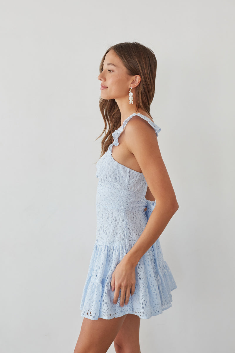 Get ready for a celebration in the Liliana Lace Mini Dress! This stunning dress features a lace design, v neckline, adjustable ruffle straps, keyhole front, and a tiered skirt. Available in white, pink, butter yellow, sky blue, and navy. Pair with your favorite to complete the look!