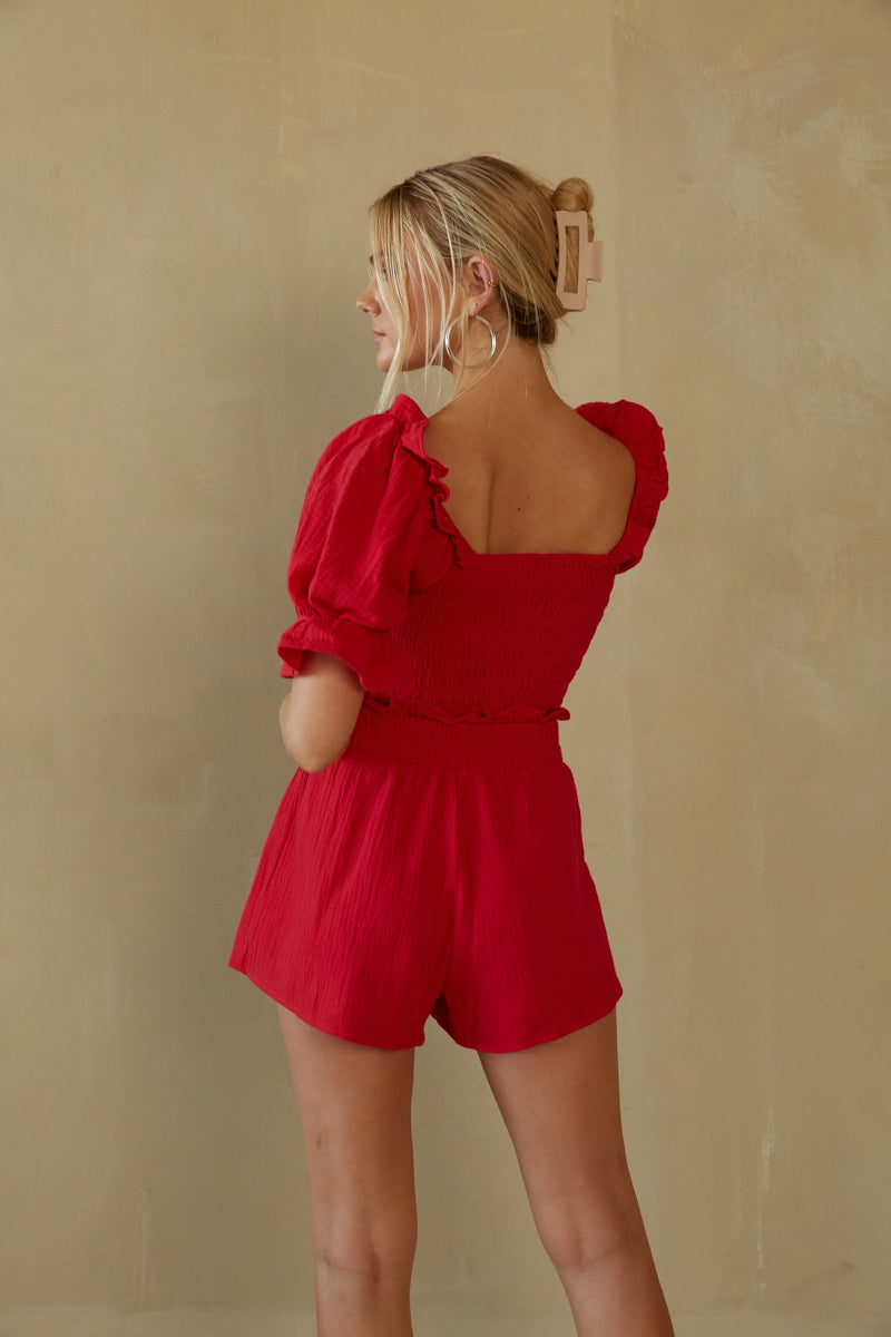 Add some spice to your wardrobe with the Ruby Paper Bag Cotton Shorts! These bright shorts feature a high waist and thick elastic waistband with a ruffle trim. Pair with the matching to complete the look!
