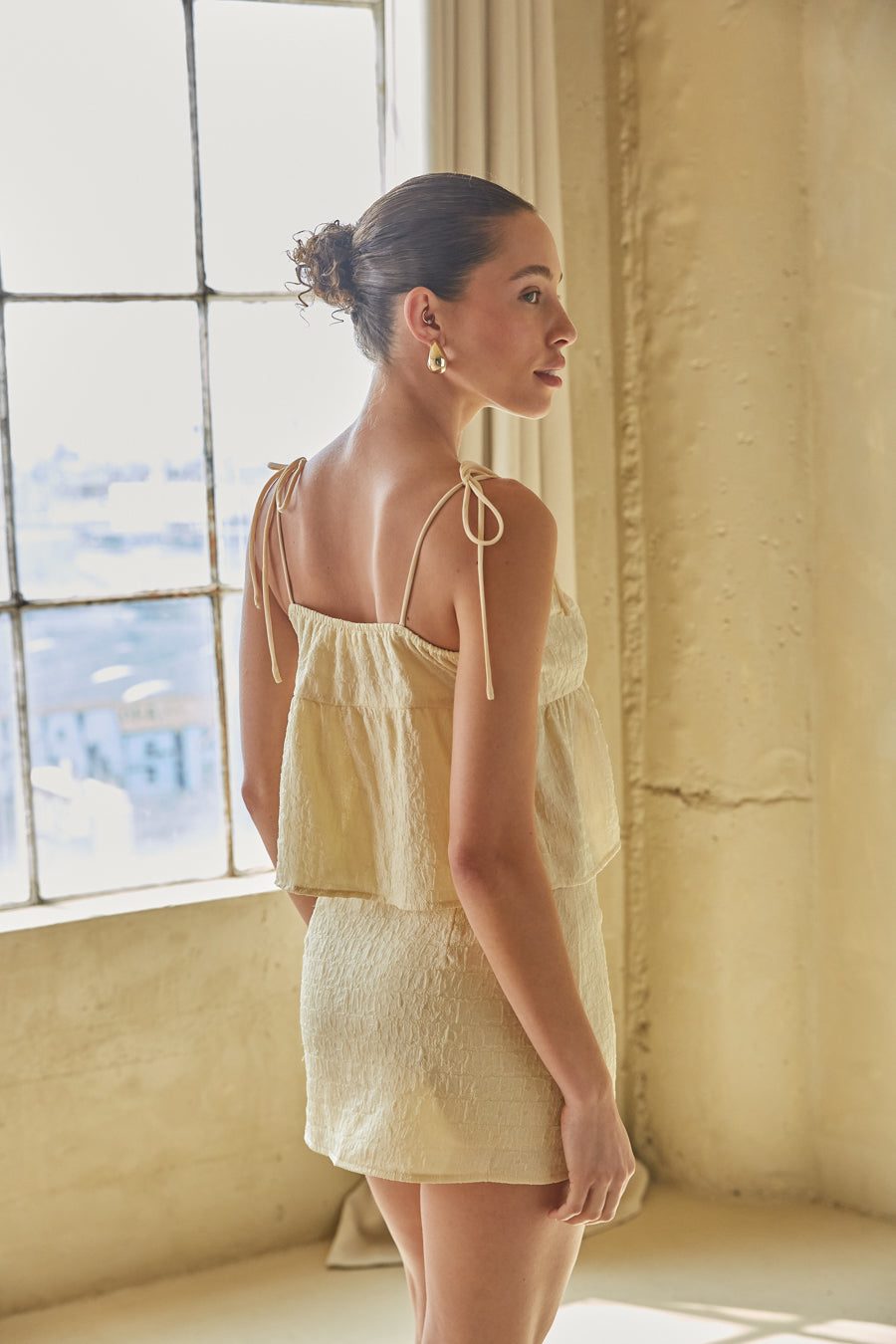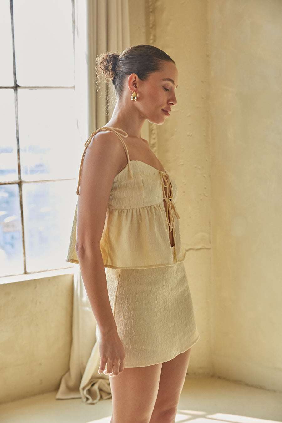You'll look simply radiant in the Talia Textured Mini Skirt! This skirt is made of a crinkle texture material and features a high rise fit and mini length. Pair with the matching to complete the set!